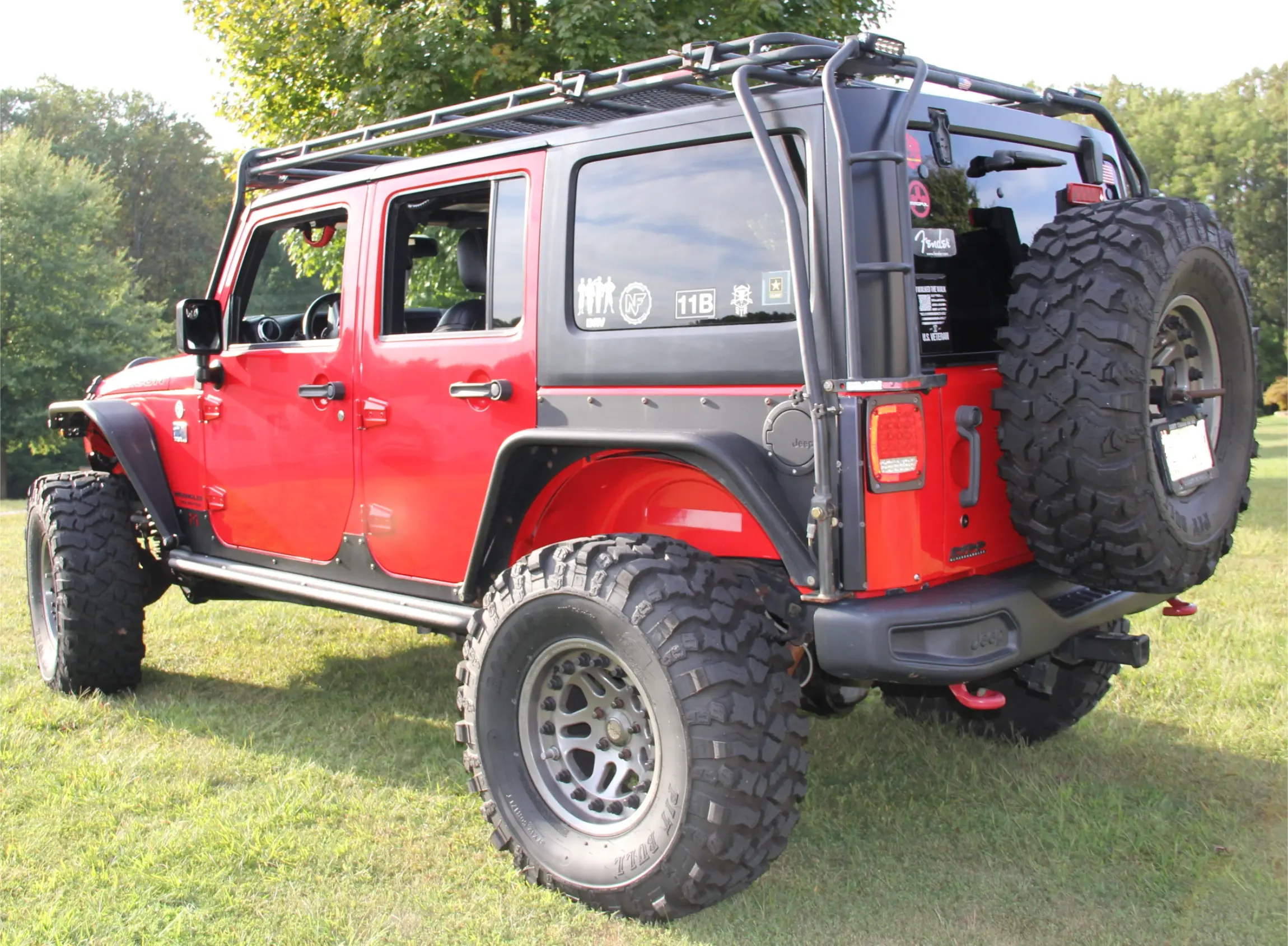 Finished in Firecracker Red over black heated leather, it features the Rubicon’s factory Rock-Trac 4:1 4WD system, Dana 44 axles, and Tru-Lok electronic lockers, enhanced by a long list of performance upgrades including a RIPP supercharger system with intercooler, PSC hydraulic steering assist, Rubicon Express 4.5-inch long-arm suspension, Hutchinson Rock Monster beadlocks, and 37-inch Pit Bull Rocker tires. Priced at $32,000, this one-owner, clean-CARFAX Rubicon is a built-and-sorted rig ready for the next adventure.
