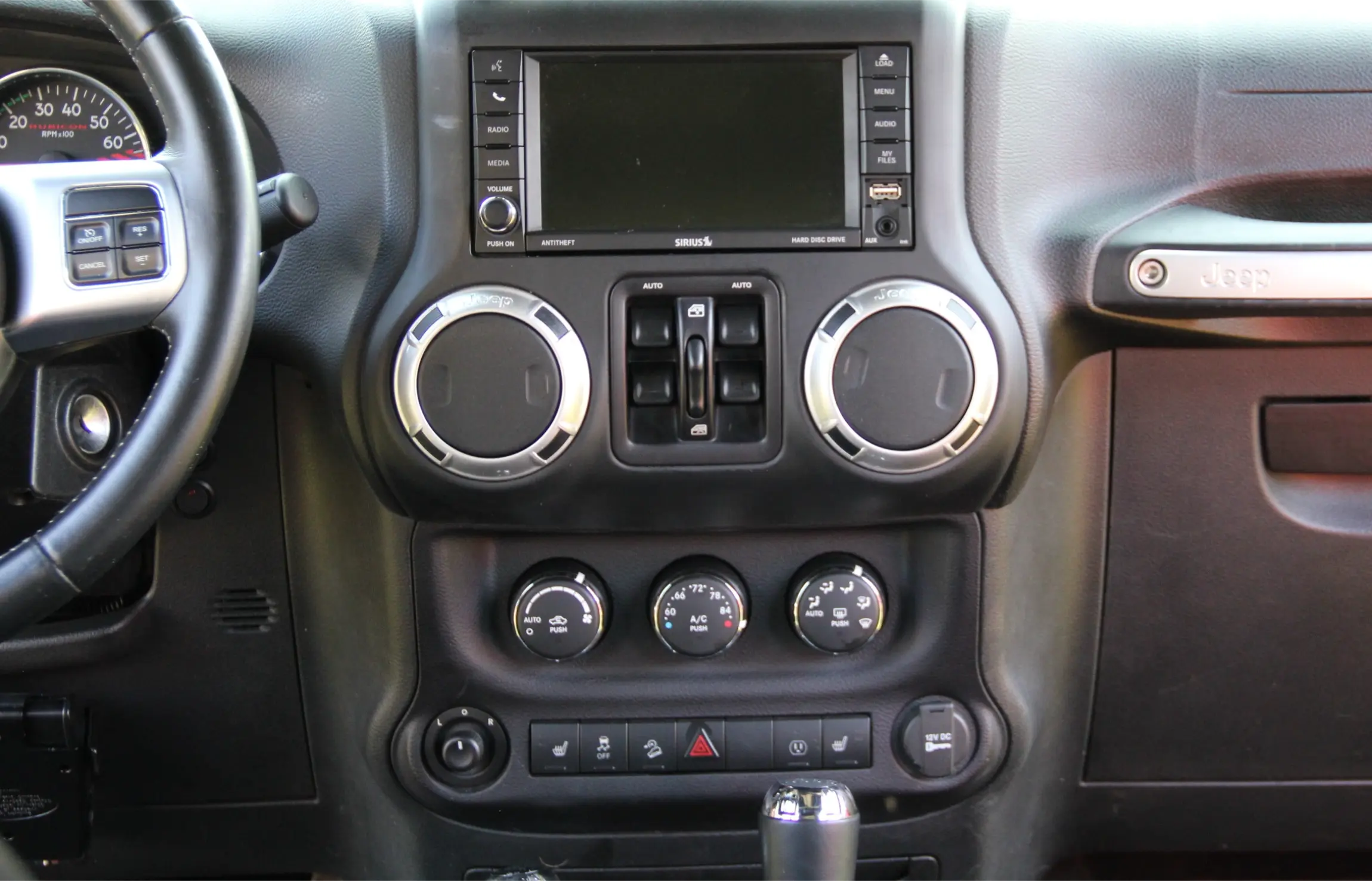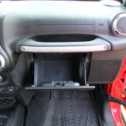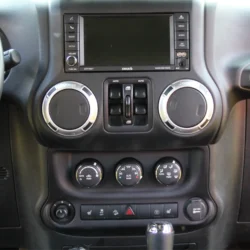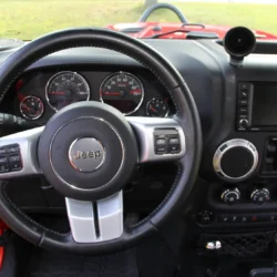 • Interior & Tech:  Inside, the factory black heated leather seats, Alpine 9-speaker sound system, Uconnect with navigation, and automatic climate control maintain daily-drivable comfort. The Connectivity Group, 115V power outlet, and Freedom Top hardtop add convenience, while premium switches and trail-ready accessories make this cabin both functional and refined.