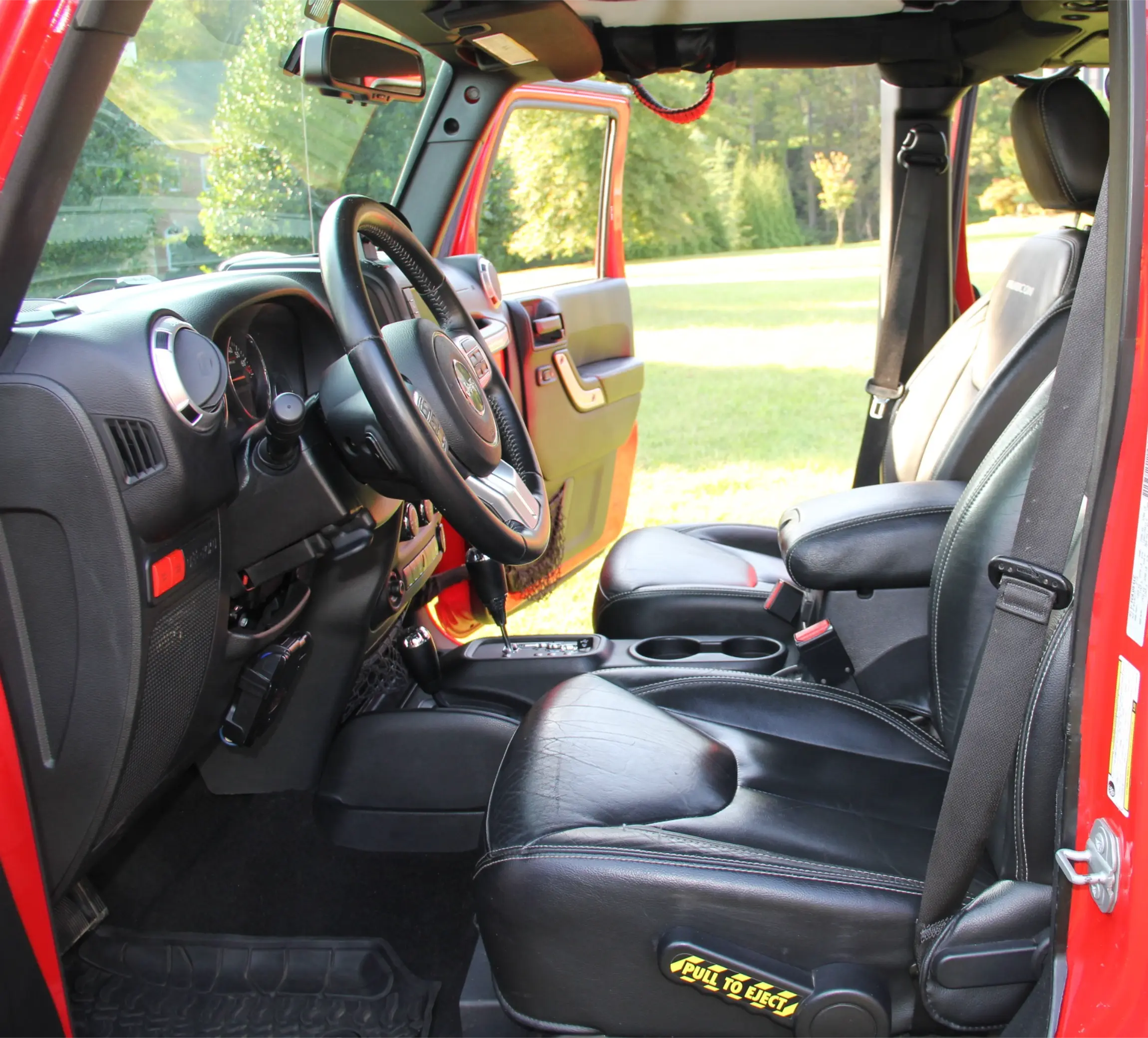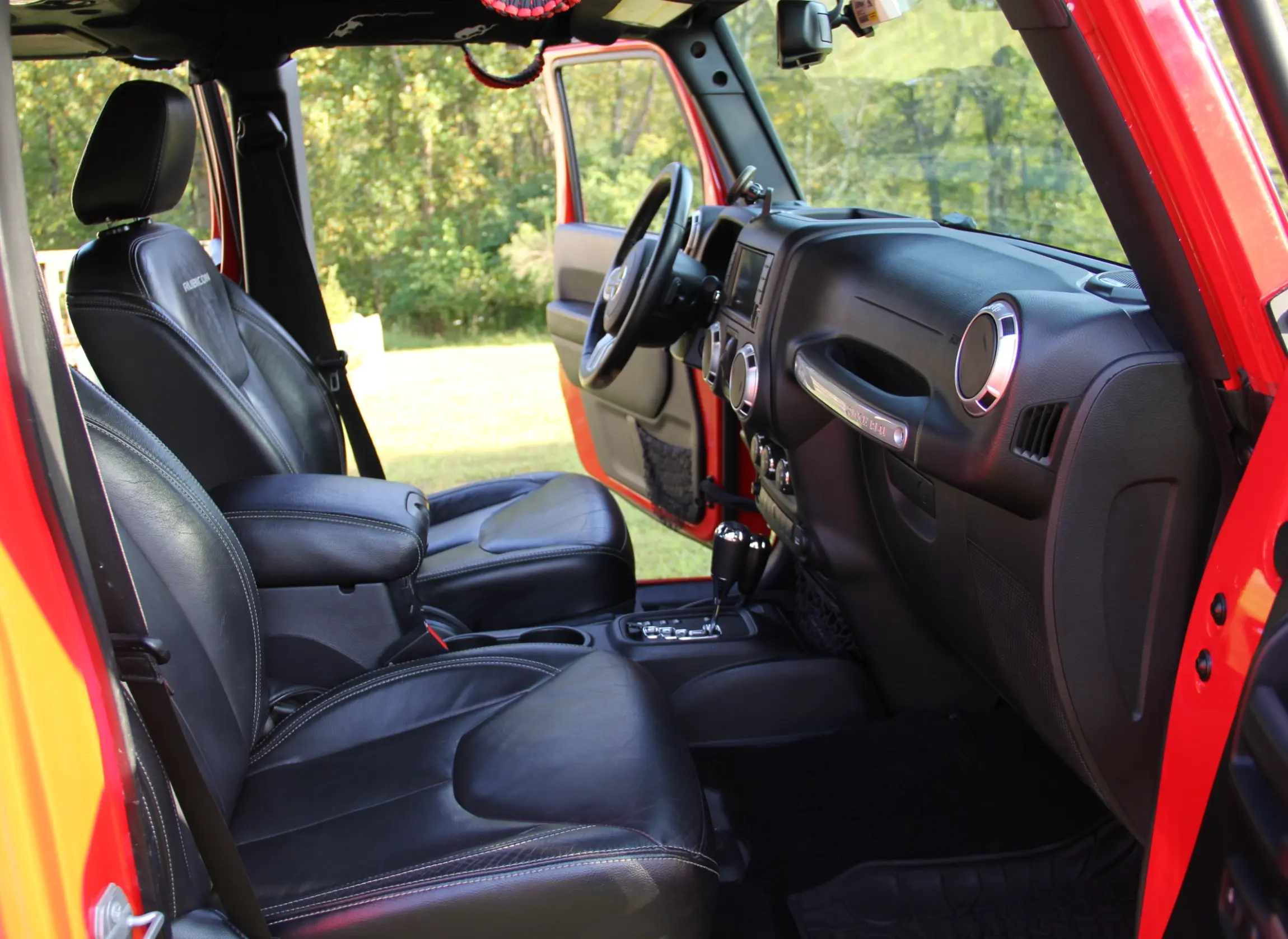 • Black heated leather bucket seats with Rubicon embroidery