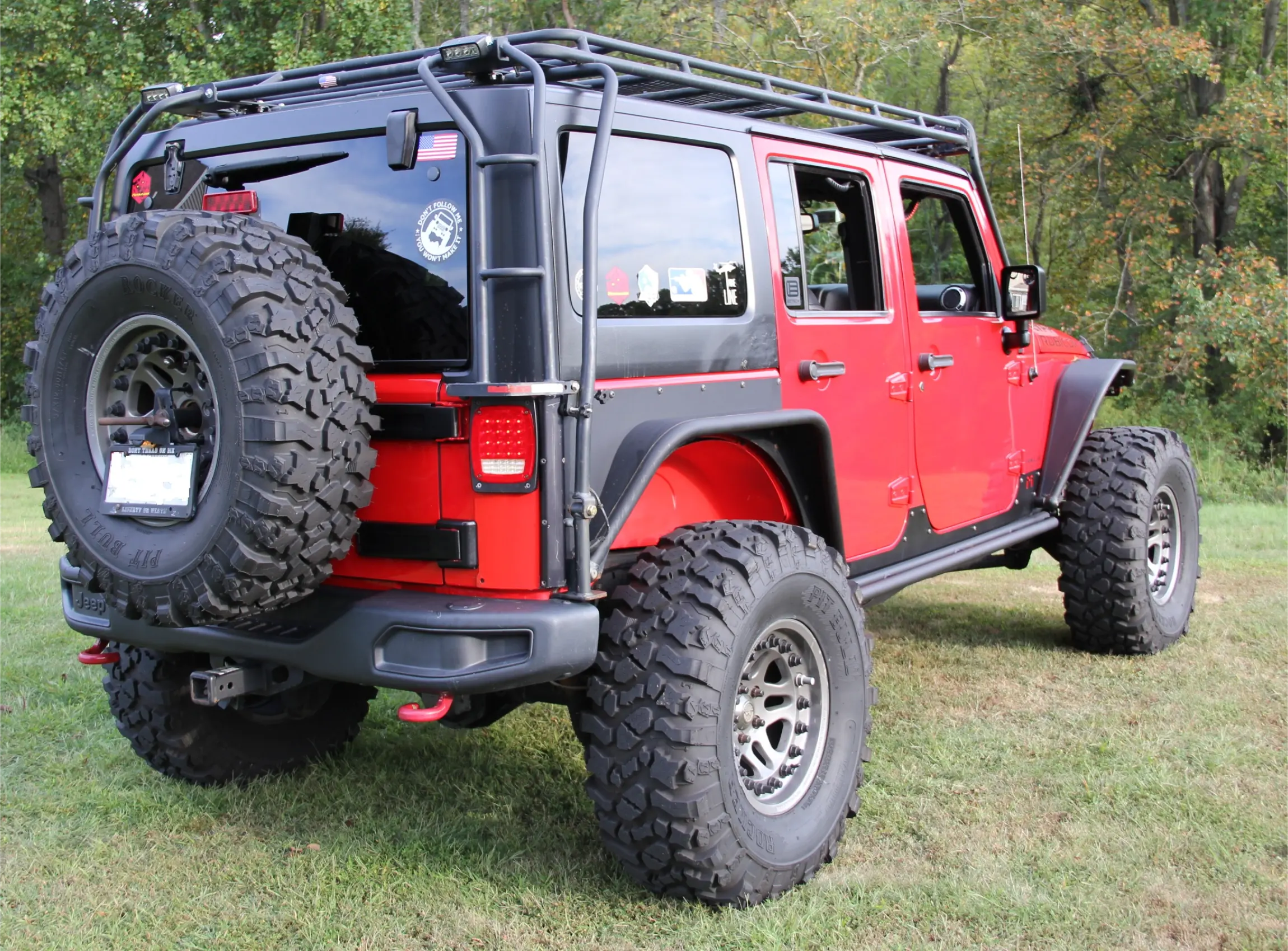 • Supercharged Powertrain:  Under the hood sits Jeep’s 3.6L Pentastar V6, enhanced with a RIPP supercharger and XL intercooler for an estimated 400+ horsepower. Power routes through a 5-speed automatic to the Rock-Trac 4:1 transfer case and 5.13:1 geared axles, delivering massive low-end torque and crawl control that makes steep climbs and highway cruising equally effortless